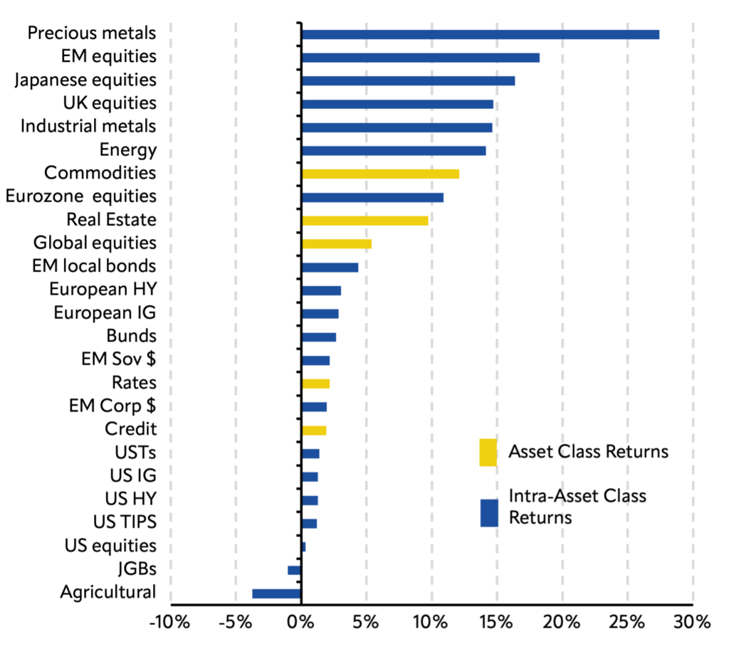 The past few months could best be described as a period of ‘choppy’, range-bound trading. Chart 1 shows that most asset classes moved higher over the period; however, some areas of the market experienced elevated volatility – notably AI-related stocks and credit, cryptocurrencies, and Japanese government bonds. Over the same period, the VIX index spiked above 25 twice, in October and November.